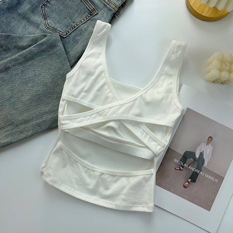 Women's New Joker Camisole with Chest Cushion Cross Waist Wear Slim Jacket