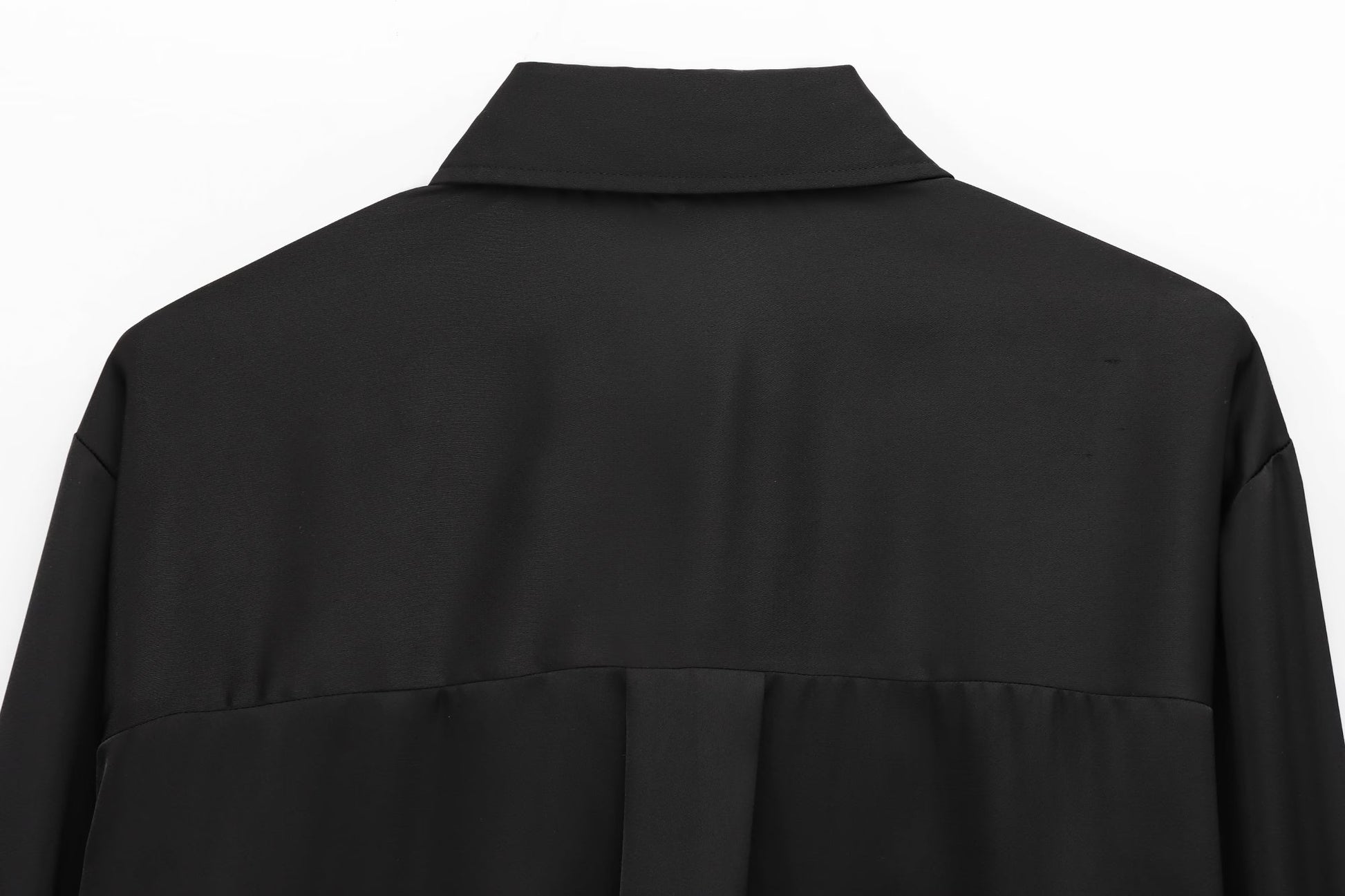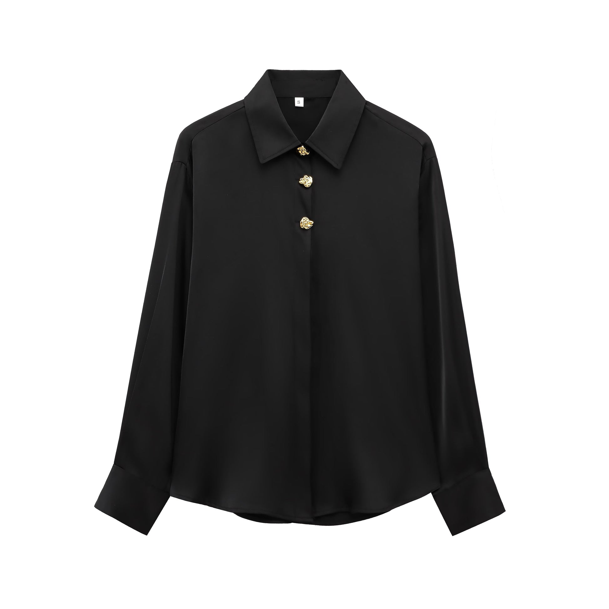 Women's New World Bank Temperament Joker Metal Button Blouses Retro Long Sleeve Button Blouses Chic Tops.