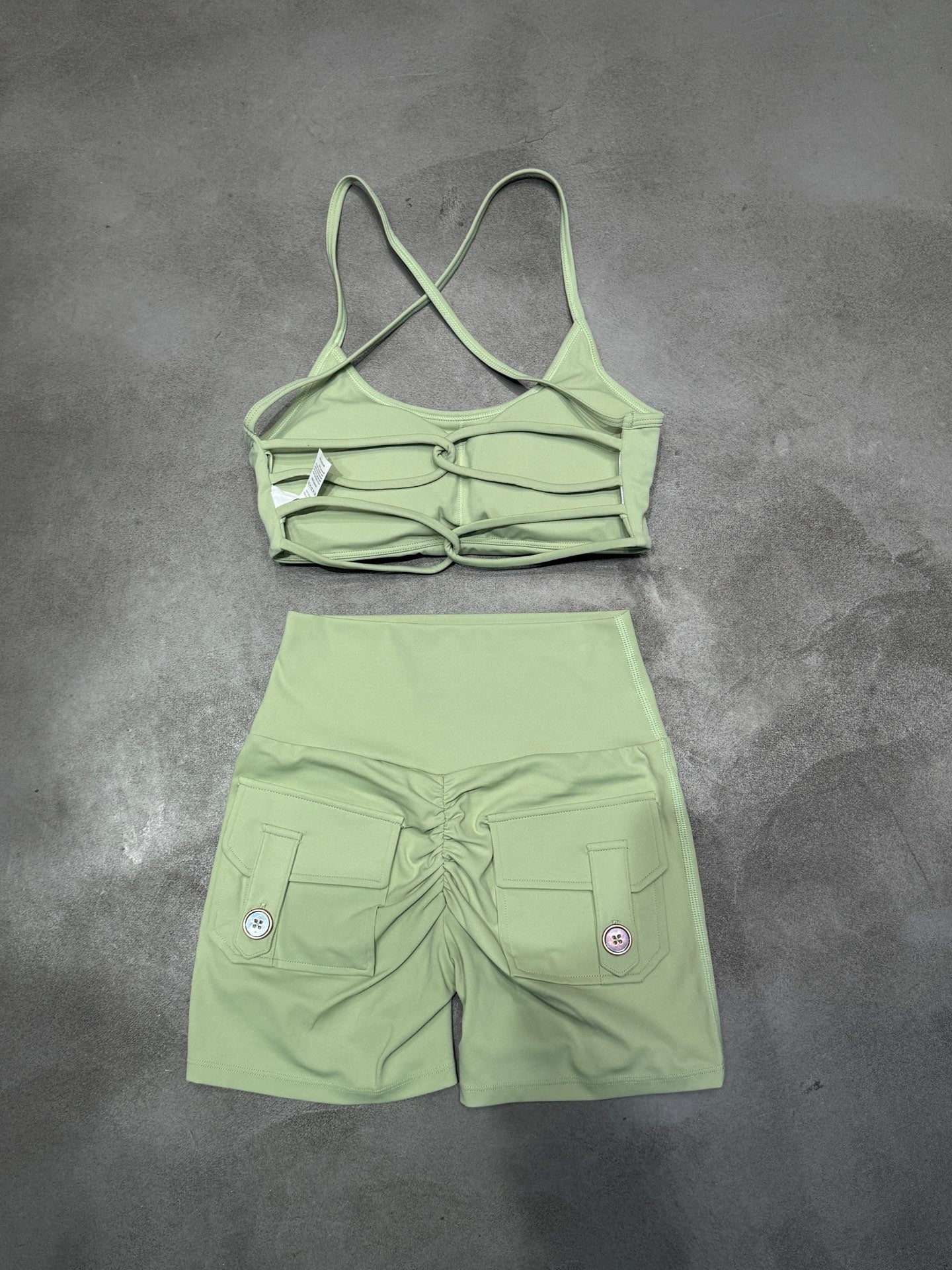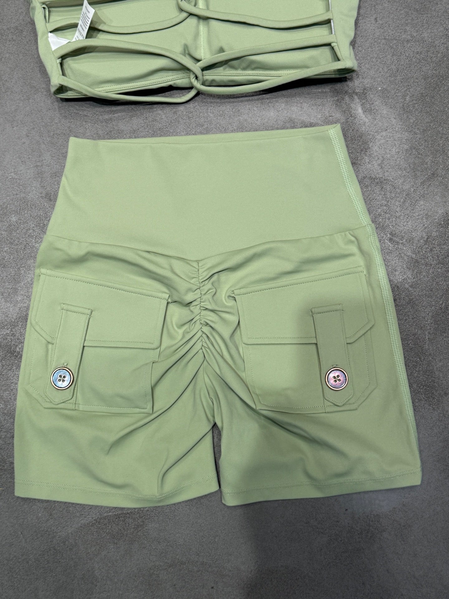 Women's New Yoga Suit Sports Fitness Cross Belt Design Vest Shorts Suit