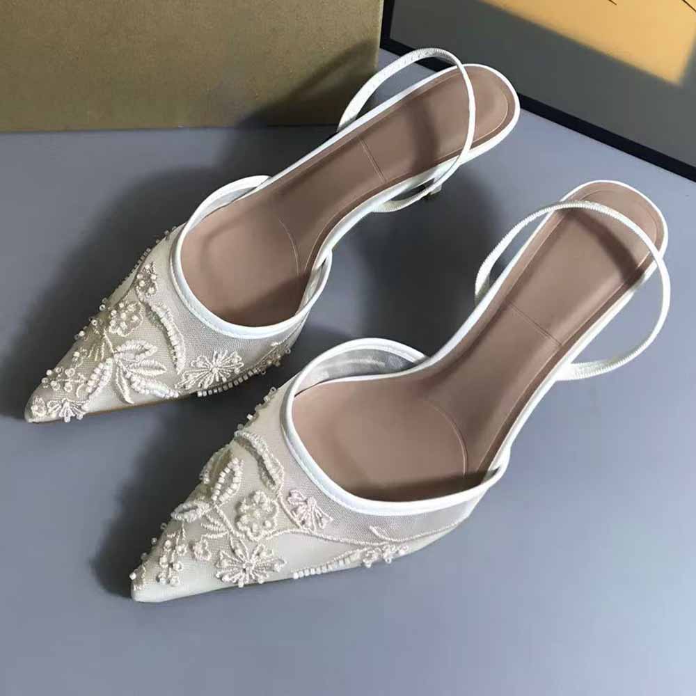 Women's Shoes New White Embroidered Mesh Stilettos Pointed Shallow Sandals Women