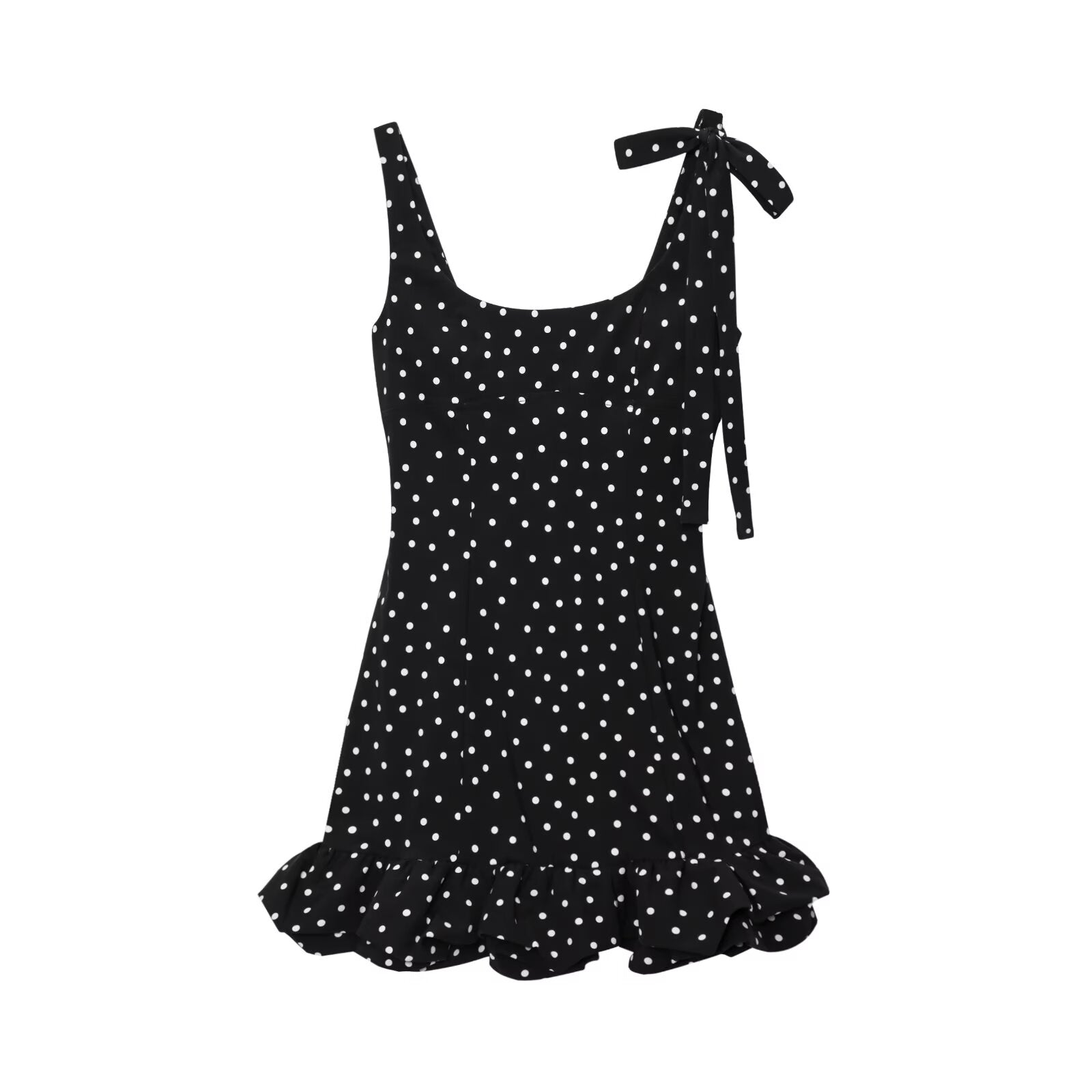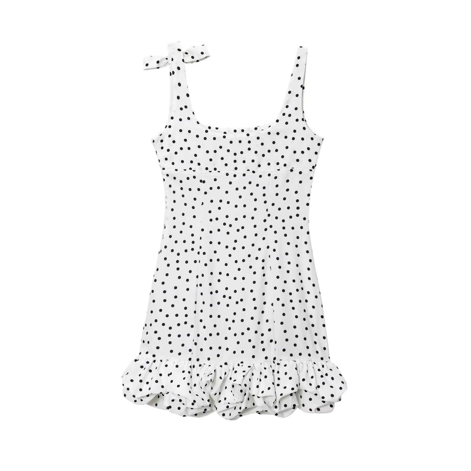 Women's summer fashion ruffle edge decoration polka dot Lace up mini dress