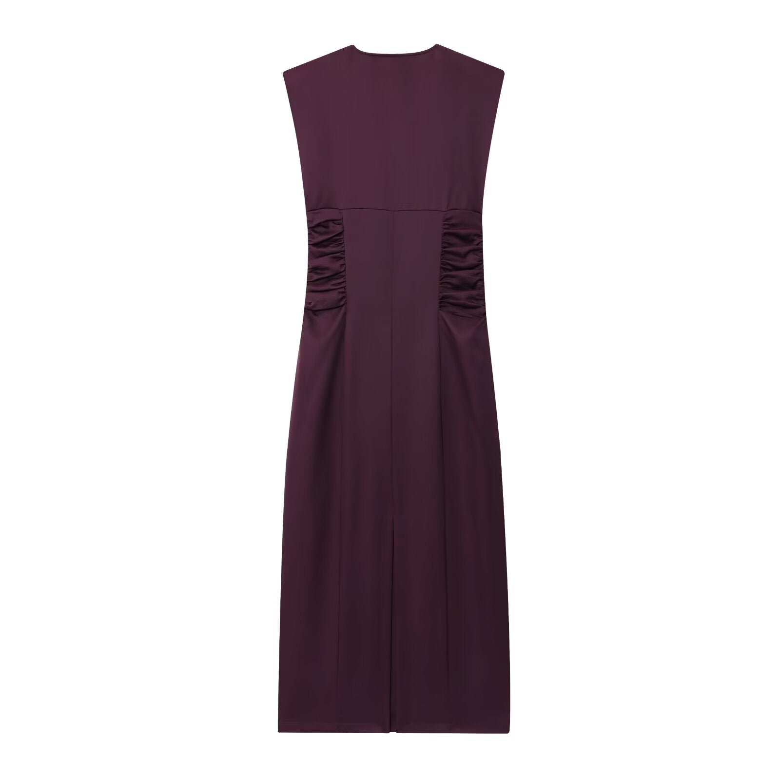 Women's summer fashion sleeveless draped V-neck MIDI dress