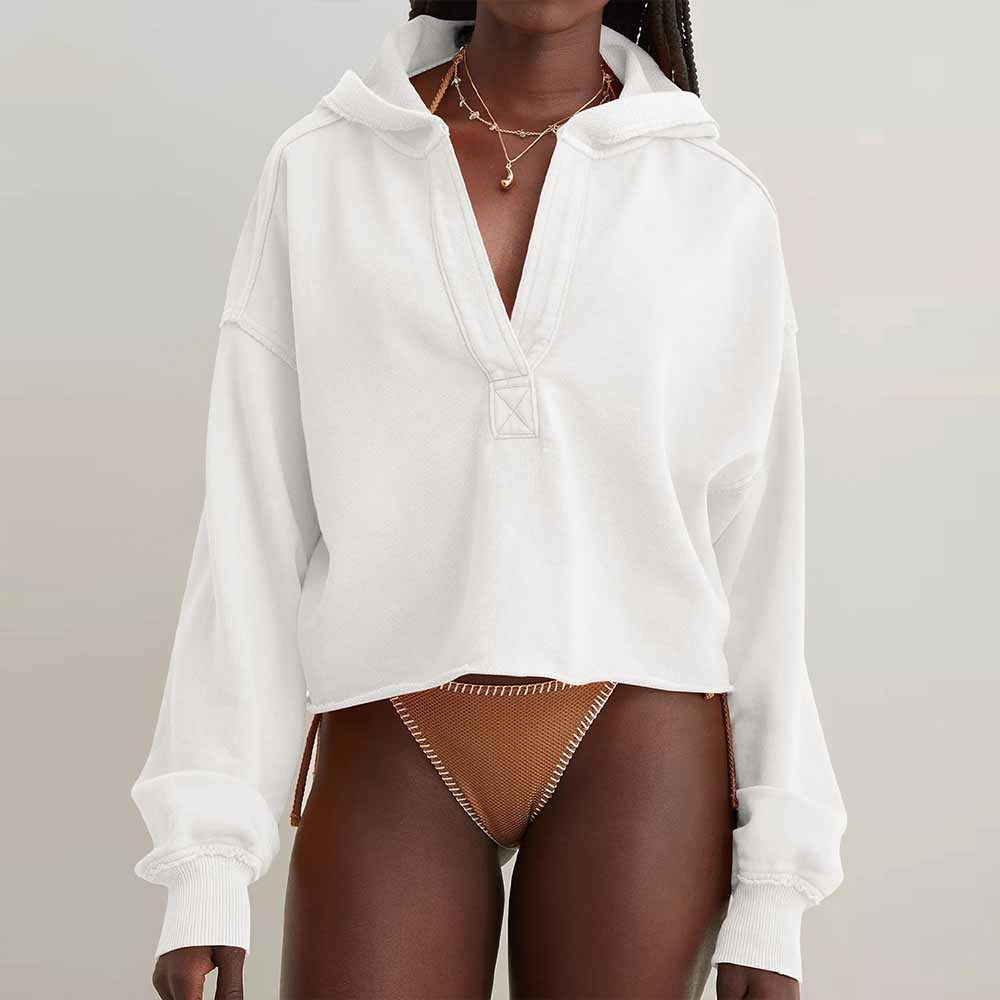 Women's Sweater Pullover V-neck Long-sleeved Coat with Raglan Sleeves Knitted Coat Fitness Exercise Hooded Yoga Clothes