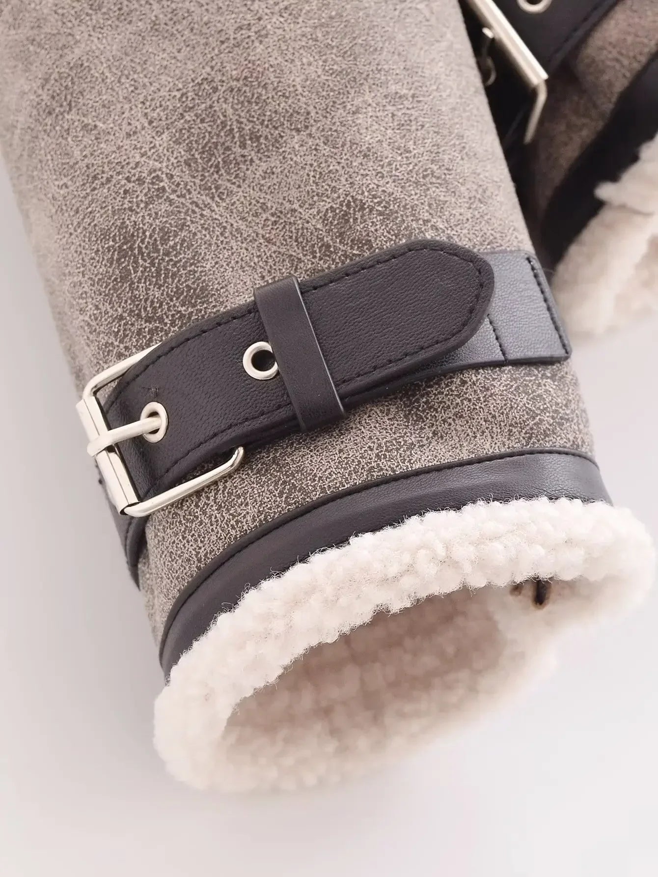 Women's Winter Fashion Casual Side Pocket Short Warm Fur Faux Leather Jacket Coat Retro Long Sleeve Zipper Women's Coat Chic Top