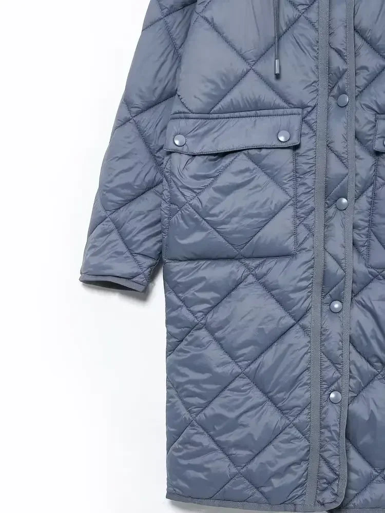 Women's winter fashion with pocket loose single breasted long style hooded cotton coat retro long sleeved women's coat chic top