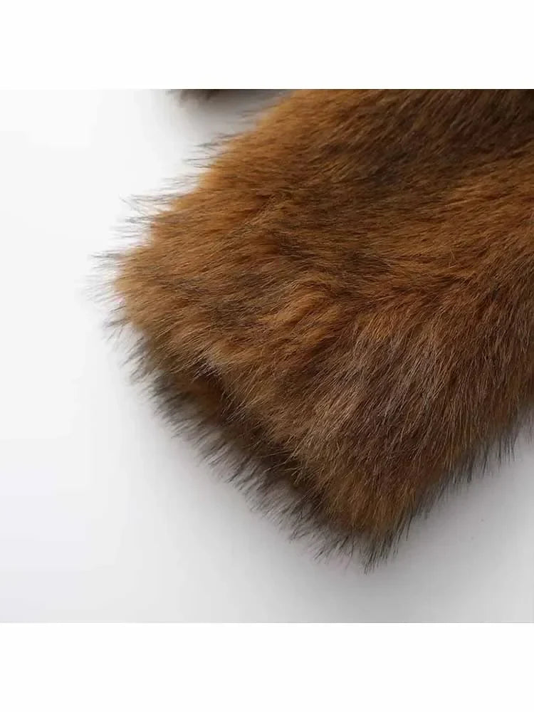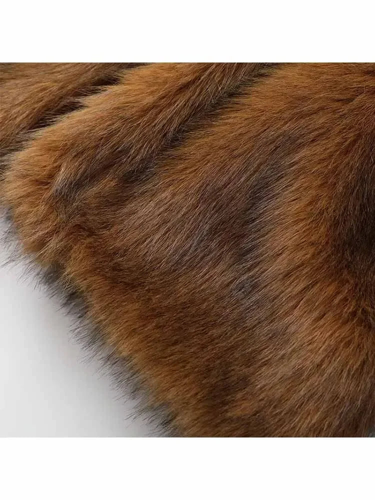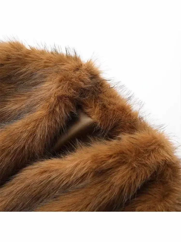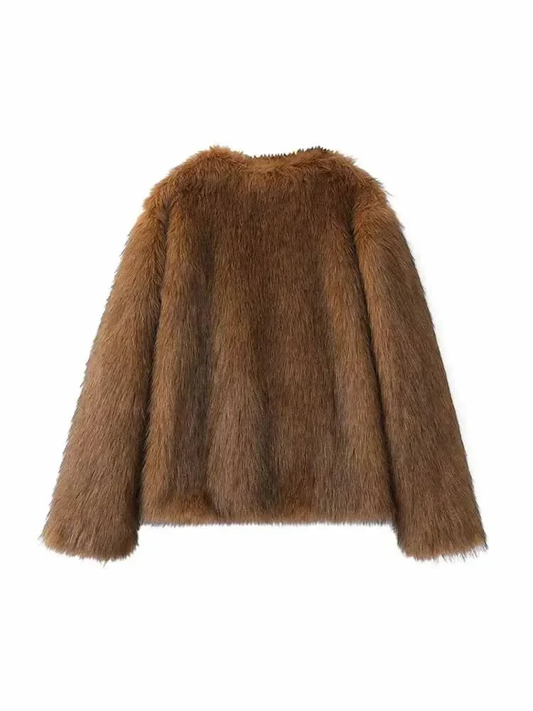 Women's winter new fashion faux fur effect casual short warm open fleece coat retro long sleeved women's coat chic top